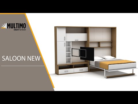 Die elegante Wohnwand Saloon, die sich dank ihres modernen Designs harmonisch in jeden Einrichtungsstil einfügt, besitzt mehrere Regale und Fächer, welche großzügigen Stauraum für Dekoration, Bücher und andere Gegenstände bietet. Das Besondere an der Wohnwand ist die integrierte Schlaffunktion. Mit nur wenigen Handgriffen und dank des komfortablen Gasdruckfeder-Hebemechanismus verwandelt sie sich in ein gemütliches Bett mit großzügiger Liegefläche. An der Wand der Wohnwand können Sie Ihren Fernseher befestigen und so Ihr Schlafzimmer in ein modernes Entertainment-Center verwandeln.